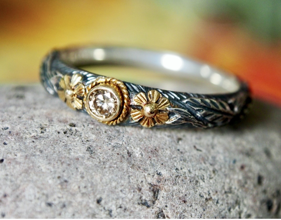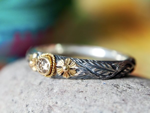 Bague Fleurs Diamant Champagne